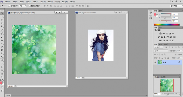 一:在PS中打開如圖所示的兩張圖片,任務是給美女換個背景。