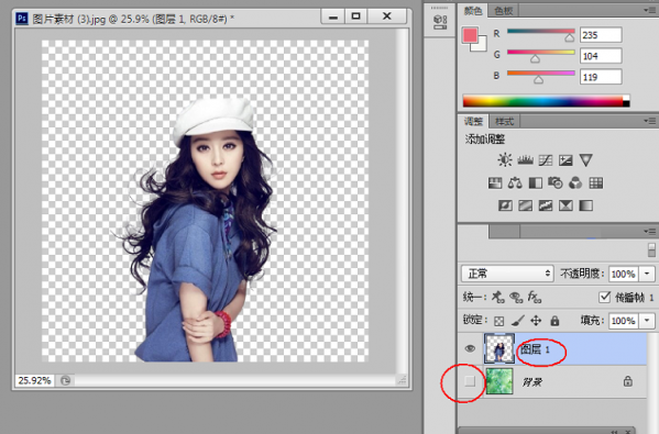 十一:在PS中如果關閉背景圖層,可以觀察透明背景下的效果。