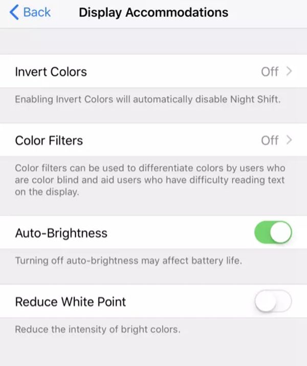 3)“自動亮度調節”移至“設置”-“通用”-“輔助功能”-“顯示調節”