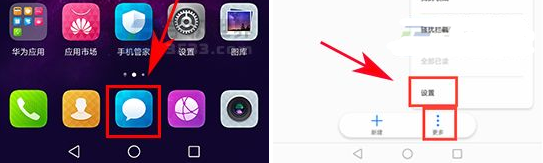 1、第一步我們先點擊打開【信息】應(yīng)用,打開后點擊右下角的【更多】,彈出菜單后再點擊【設(shè)置】。