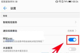 2、接著只要把【網(wǎng)址識別】選項開啟就行了,當(dāng)手機(jī)收到含有網(wǎng)址的信息時,系統(tǒng)就會自動進(jìn)行分析,如果是具有風(fēng)險的網(wǎng)址將會提醒用戶。