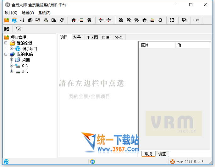 把拼接好的全景攝影圖片拖到場景區,然后拖拽它們以改變順序,再點擊需要編輯的場景,打開它們的屬性,選擇需要的屬性值。