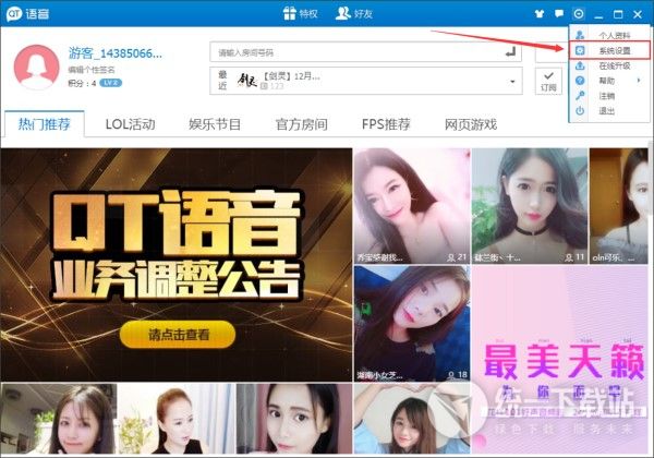 5.打開QT語音,點擊設(shè)置,進入設(shè)備,找到系統(tǒng)設(shè)置;