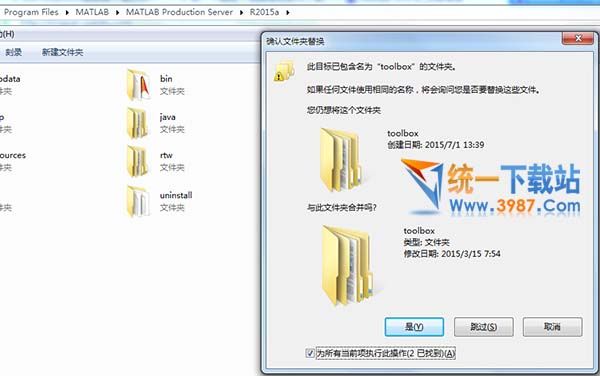 12.然后進入你的安裝目錄,即你的matlab安裝的路徑,點擊去,粘貼這三個文件夾,替換以前的文件。